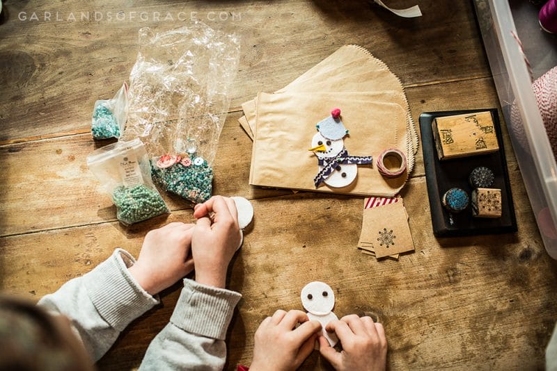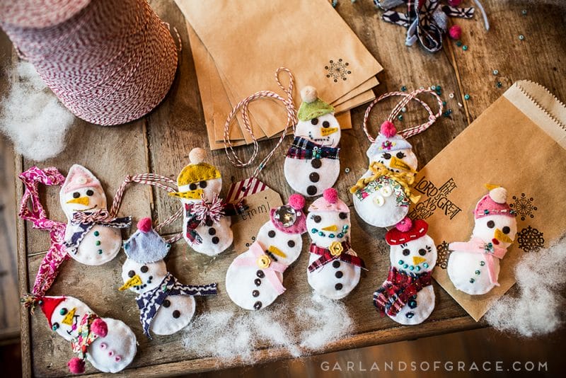 Here at Garlands of Grace, we are enjoying a little snowman building! But not the type that requires cold snow. ;) Handmade felt snowmen ornaments made by sisters & brothers made the perfect gift for special friends! Made from white felt, decorated with buttons scrap fabric, yarn, buttons and slightly stuffed to give each snowman it’s own special touch! Super fun craft and so easy. I recommend this project ages 5+!!
