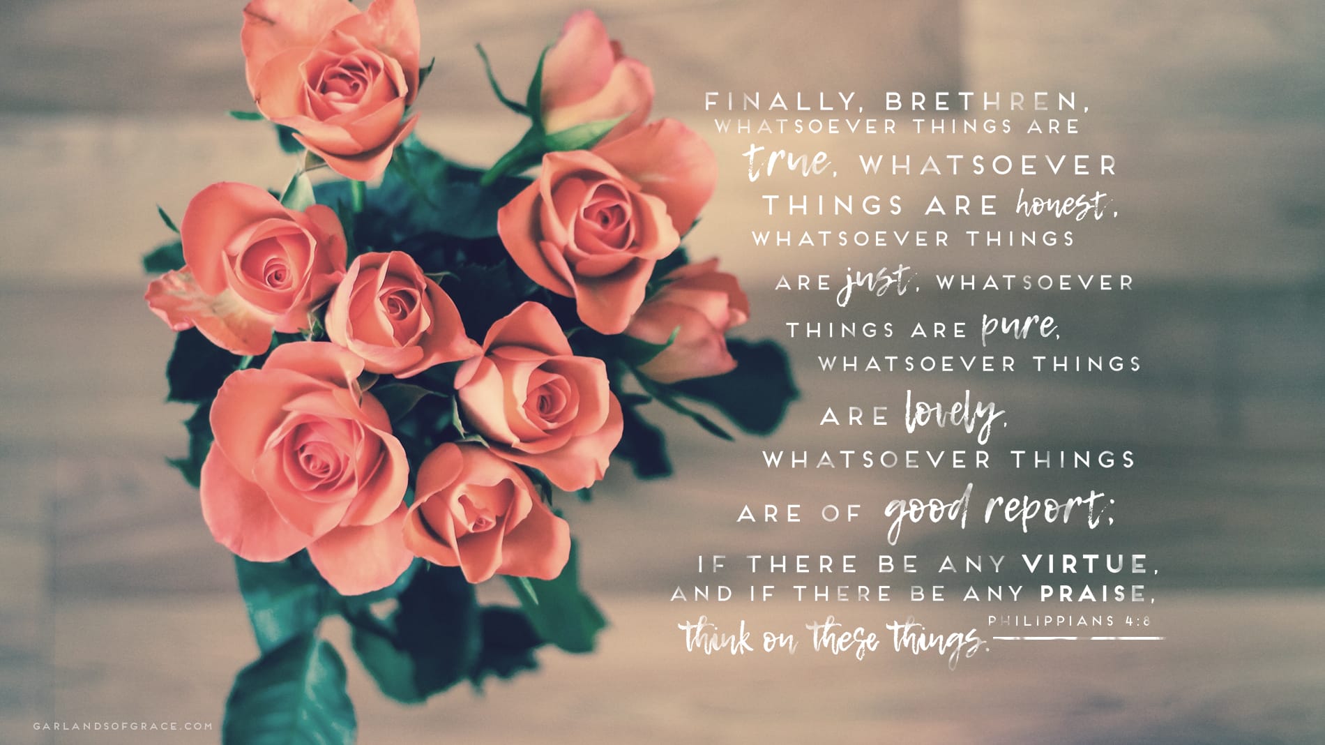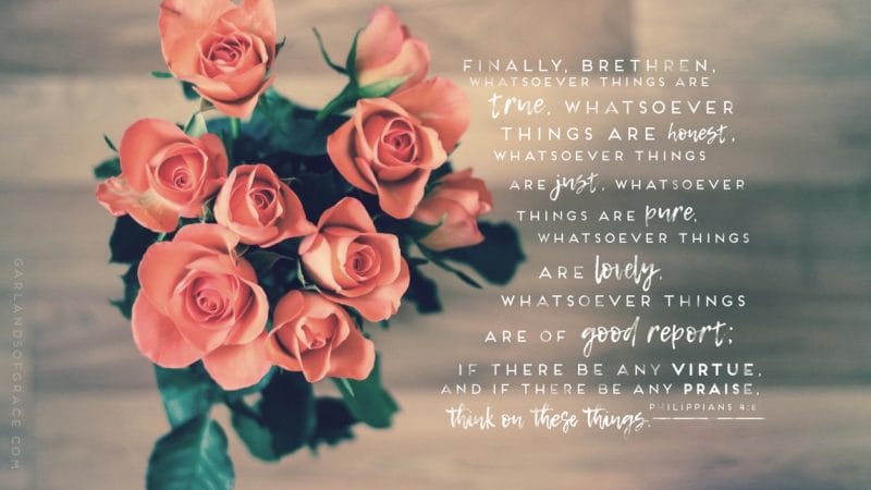 Finally, brethren, whatsoever things are true, whatsoever things are honest, whatsoever things are just, whatsoever things are pure, whatsoever things are lovely, whatsoever things are of good report; if there be any virtue, and if there be any praise, think on these things.