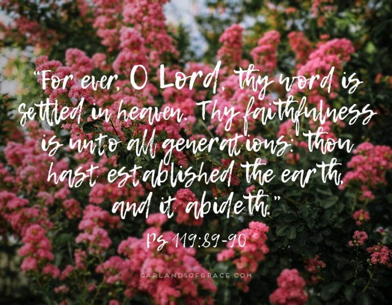 For ever, O Lord… 4 / 2 / 174 / 2 / 17“For ever, O Lord, Thy word is settled in heaven. Thy faithfulness is unto all generations: Thou hast established the earth, and it abideth.” Psalm 119:89-90