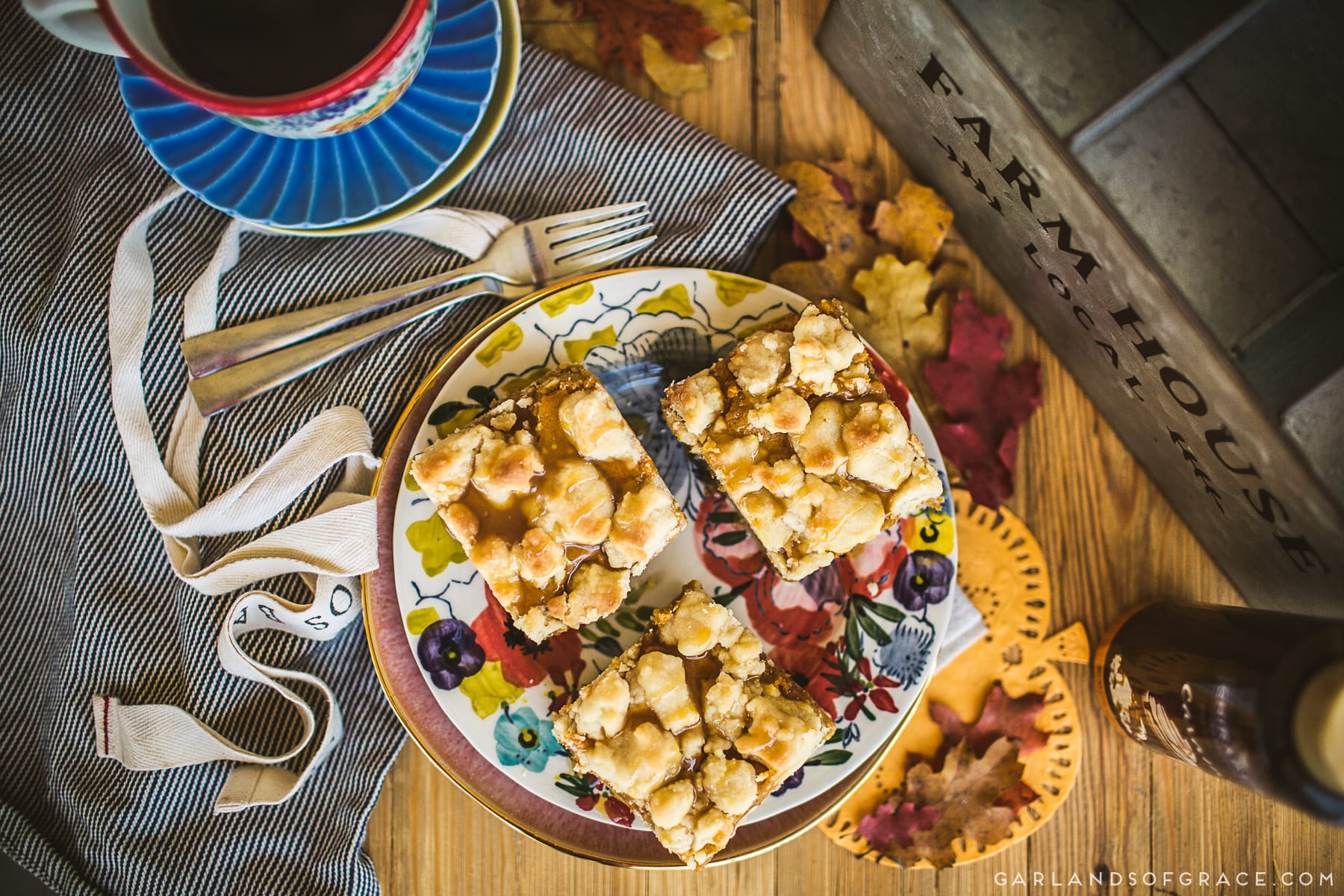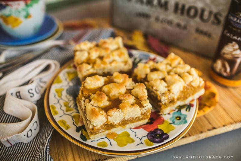 How are y’all enjoying the Autumn InstaPary?!???? I’m having so much fun sharing the excitement with y’all. BUUuuut you can’t have a party without a sweet treat. ? The house is filled with the smell of pumpkin spice and everything nice as a pan of my favorite autumn sweet bar comes out of the oven! My Pumpkin Caramel Crumb Bar recipe is super quick to whip up and outrageously delicious!! Y’all… DON’T WAIT to make these. Plus, the leftovers make a pretty fantastic breakfast! ;) Buttery shortbread crust, creamy pumpkin filling, finished off with a shortbread crumb topping and sweet caramel drizzle. These bars are fantastic eaten right away and(a bonus) they are even better next day. Give them a try! ?