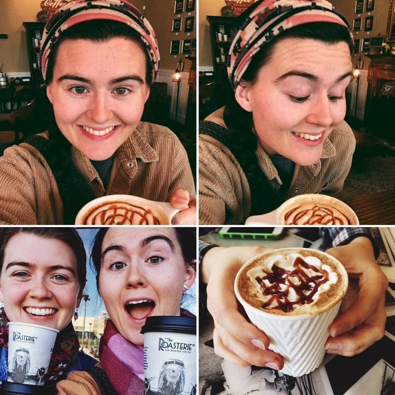 Grace and Lydia are enjoying a good cup of coffee on a beautiful autumn Friday here! Lydia’s lovin’ her Pumpkin Spice Latte and Desert Rose Cowl just a little LOT. ? Wishing y’all a very happy Friday!?