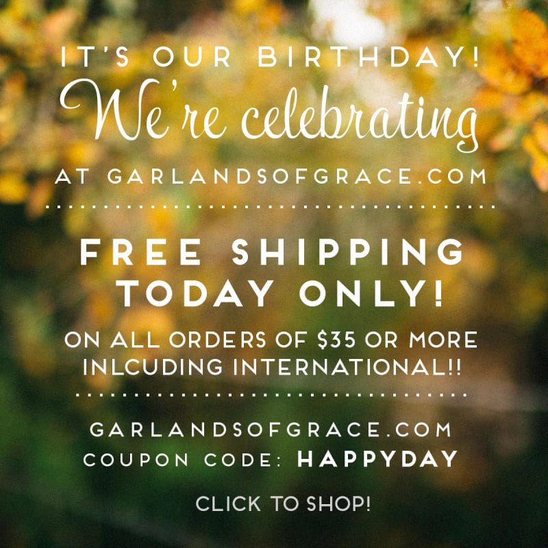 This week marks 11 years since GarlandsOfGrace.com launched!✨? We’re thanking the Lord for His faithfulness throughout these years and surprising you all with FREE SHIPPING on all Garland of Grace orders of $35 or more TODAY ONLY!! Coupon Code: HAPPYDAY