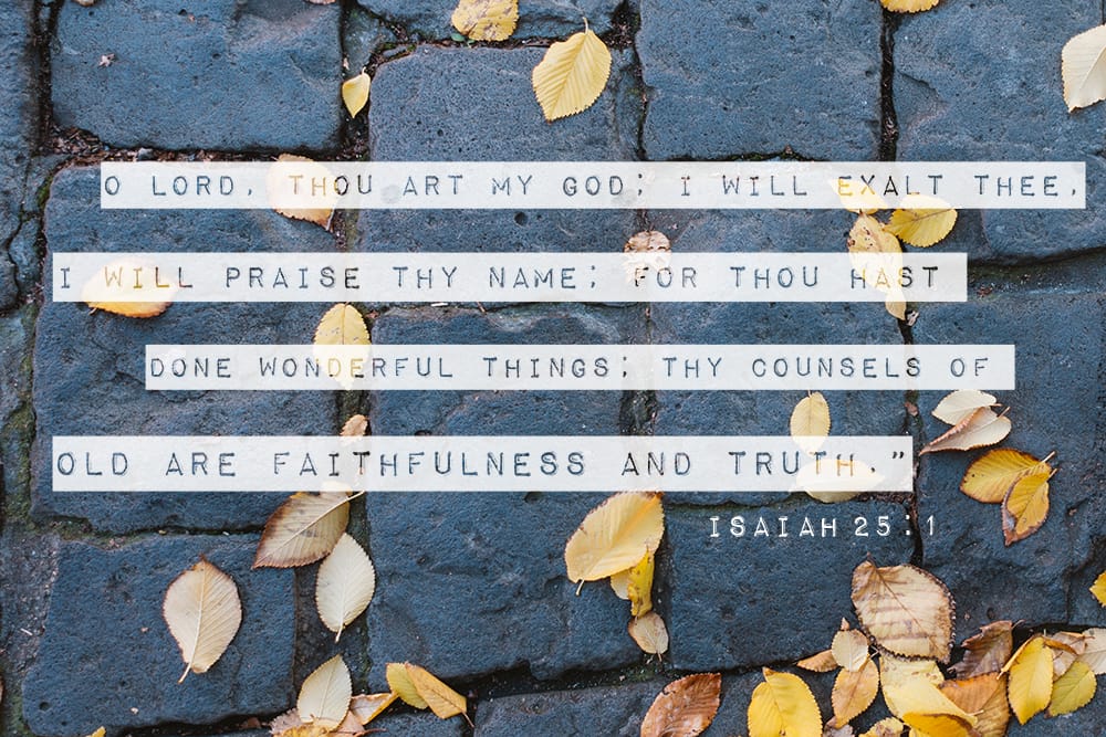 I will praise Thy name… 11 / 19 / 1711 / 19 / 17“O Lord, thou art my God; I will exalt thee, I will praise thy name; for thou hast done wonderful things; thy counsels of old are faithfulness and truth.” Isaiah 25:1