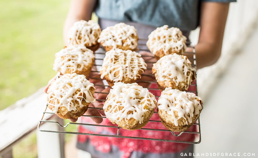 There is nothing better than a muffin on a Saturday morning! Here at Garlands of Grace headquarters we are enjoying a batch of supremely moist Lemon Crumb Muffins fresh from the oven. The sweet smell of cistrusy-sweetness fills the air as the cool Spring morning goes by! It’s the making of a pretty spectacular day if you ask me. Today I want to share our own personal family recipe with you and hope you enjoy them as much as we do!! Lemon Crumb Muffins! This recipe is so easy and delicious that you will find yourself making them more often than just Saturday mornings. Enjoy!