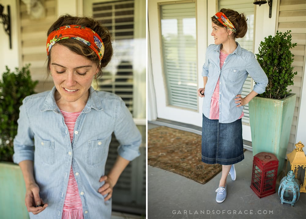 I must confess, I absolutely love orange and chambray blue together!! ???? I’m keeping it casual-comfy as I conquer Monday Tasks today with my Chambray Keds + Clementine Blossom Stretch Cecily Headwrap. ? This Garlands Of Grace Headwrap is literally THE MOST comfortable! ??