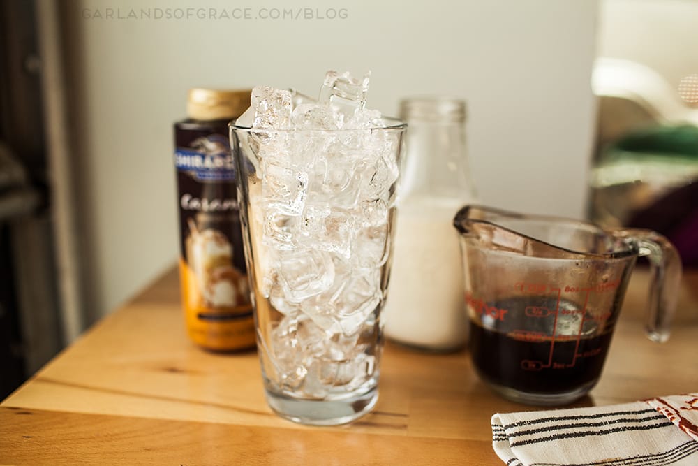 - Dissolve sugar in coffee then pour over ice(may need to add additional ice after this step!) Then add milk!