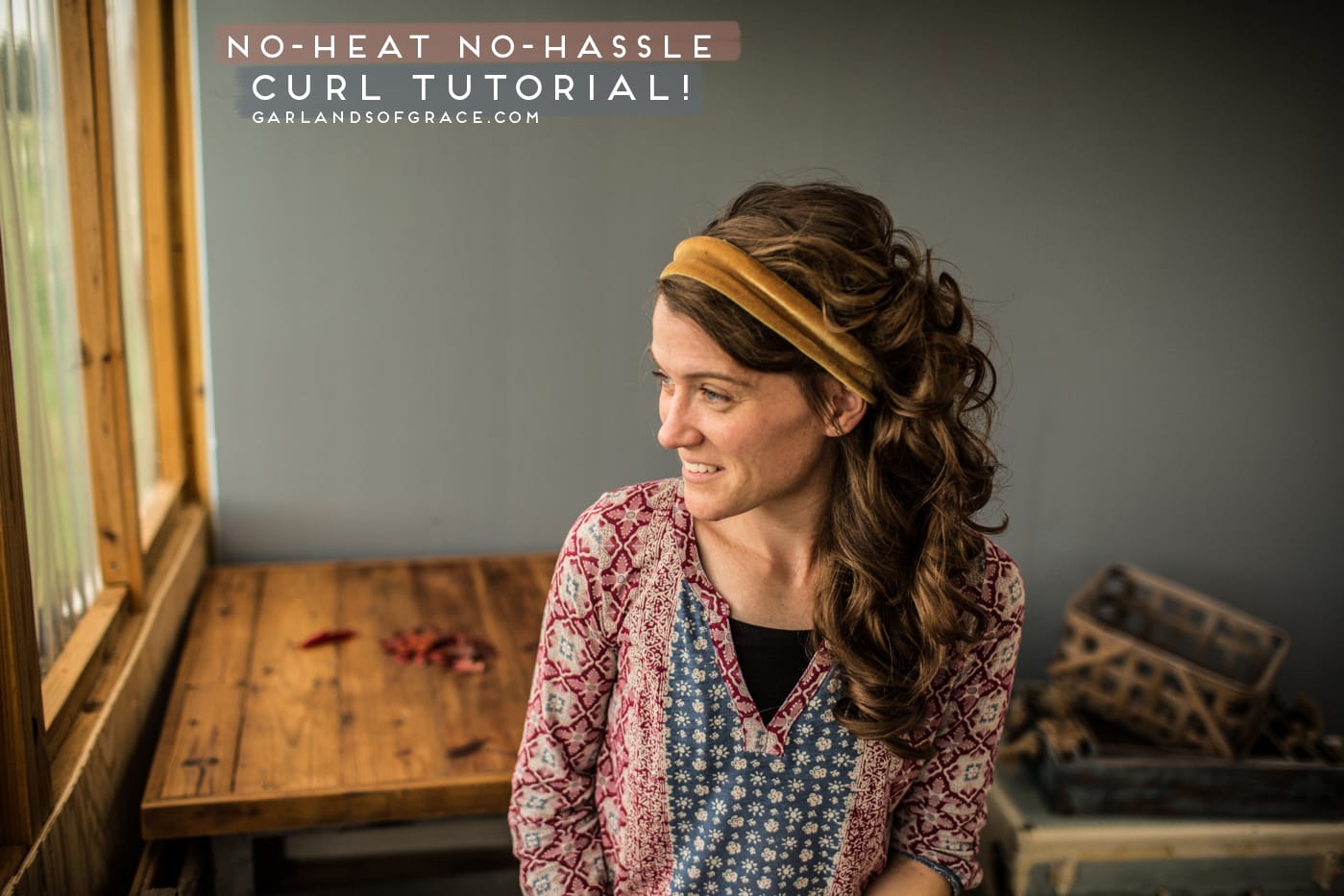 I have had lots of requests for my No-Heat No-Hassle Curling method and I am so excited to finally sit down and share with you all!??? If you are like me, you have about 5 1/2 minutes to get your hair done on an average morning. This 5 1/2 minutes leaves very little time to pull out the curling irons and heat them up, let along curl your hair. The average rollers or foam curlers leave me with a literal headache and lack of sleep! A few years ago I finally found a curling method that was heat, hassle, and pain free and can be done in just about 5 minutes. I actually will very often wear the curling updo(see picture 5) that produces the curls all throughout the day as it’s a super cute vintage look and then I will have fun healthy curls on day two! So, how about a step by step picture tutorial of my No-Heat No-Hassle curling technique? ✨
