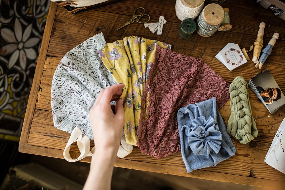 It’s a lovely spring day here in East Texas and Garlands of Grace Headwrap orders are getting their finishing touches before they head out to the post office!? I had to snap a quick picture of this lovely assortment heading to a customer this afternoon. ? Left to right, Meg’s Lace Snood in Soft Blue, Garland’s Lavender and Honey Cowlily Wrap(so super soft), Cecily’s Woodland Lace in Rose, Katherine’s Essential Rosette Wrap in Chambray, and our Knotted Wrap in Light olive!! ? OH MY, so much loveliness!! It is our hope and prayer that every package shipped is a great blessing to our sweet customers. ?? Now, back to the packaging station to finish those orders! Happy Friday friends! ??♀️