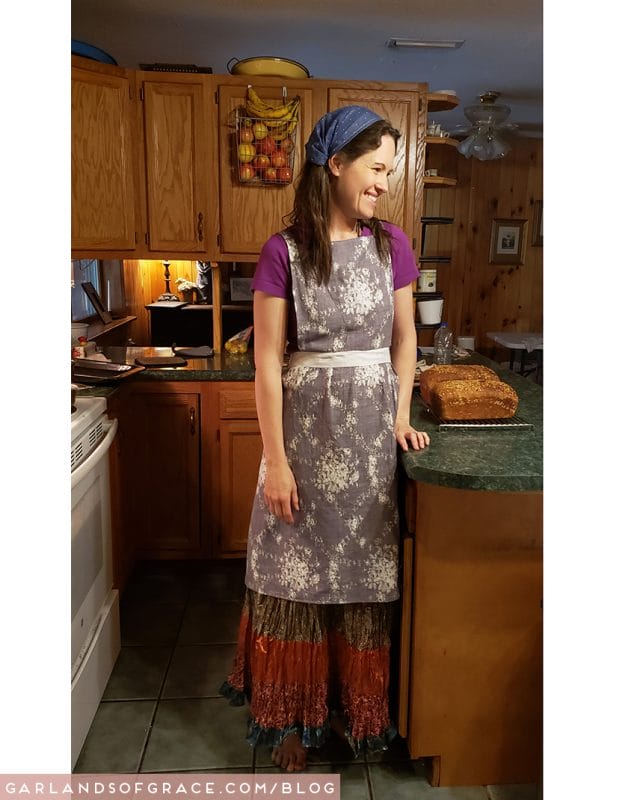 Our gorgeous customer Kim busy in the kitchen and styling her Garlands Of Grace Organic Indigo Dots Headwrap to perfection! ✨?? How lovely is that apron?!! Find your favorites from our ORGANIC Headwrap collection today!