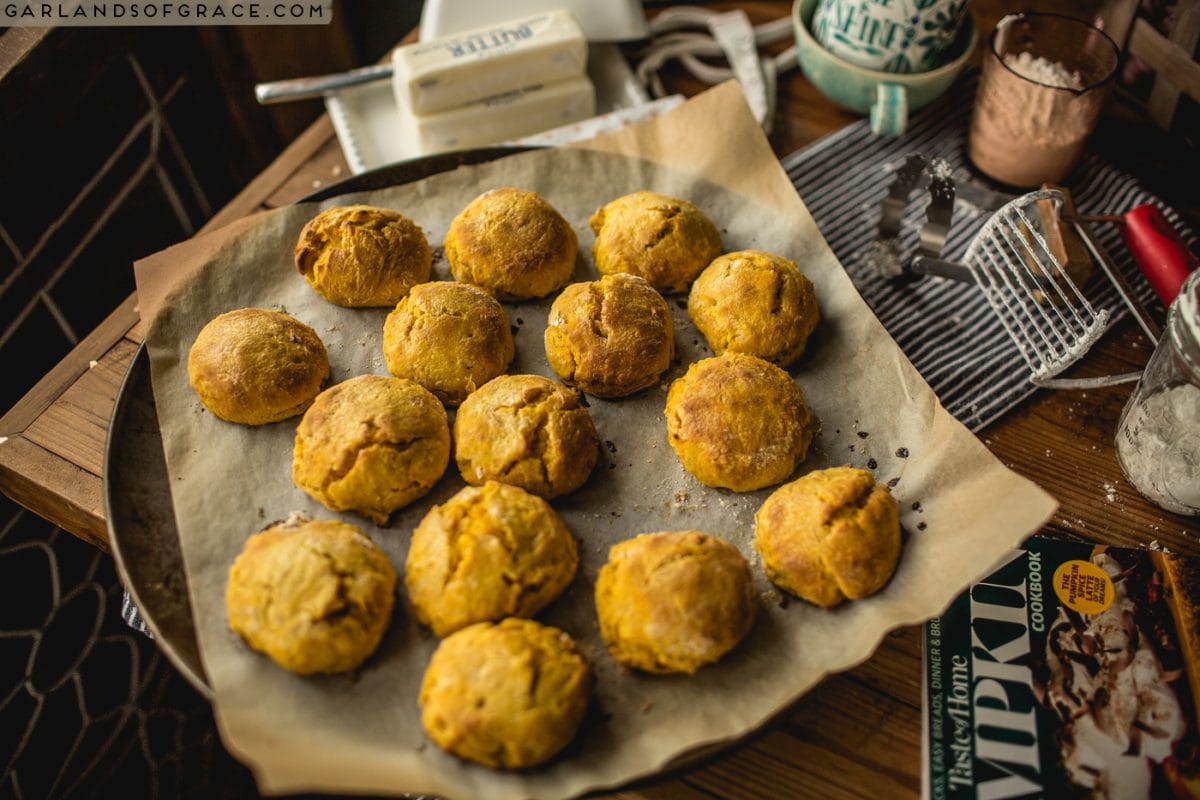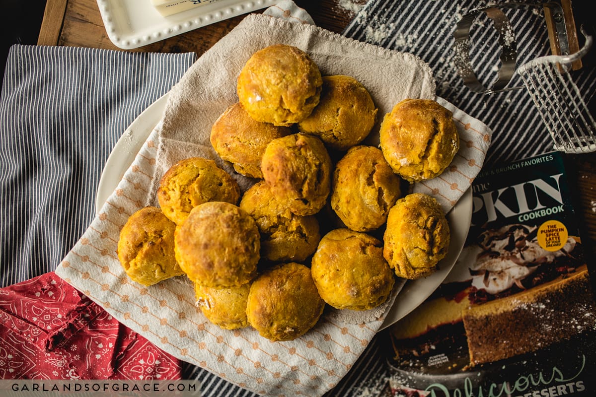 Hehe, I know! That is a looooong title. BUT I had to accurately describe this recipe and those words pretty well sum it up! ? Here at the Garlands of Grace House, we’ve entered the season where pumpkin is baked into…. well, nearly everything! And when you pair Pumpkin with Biscuits, the combination is sure to be a winner. Quick and Easy Melt-In-Your-Mouth Pumpkin Biscuits are the perfect addition to any meal and make a pretty delicious mid-afternoon snack! If you are like me, generously top with butter and add a drizzle of Honey.? We hope you enjoy this recipe just as much as we do. ❤️