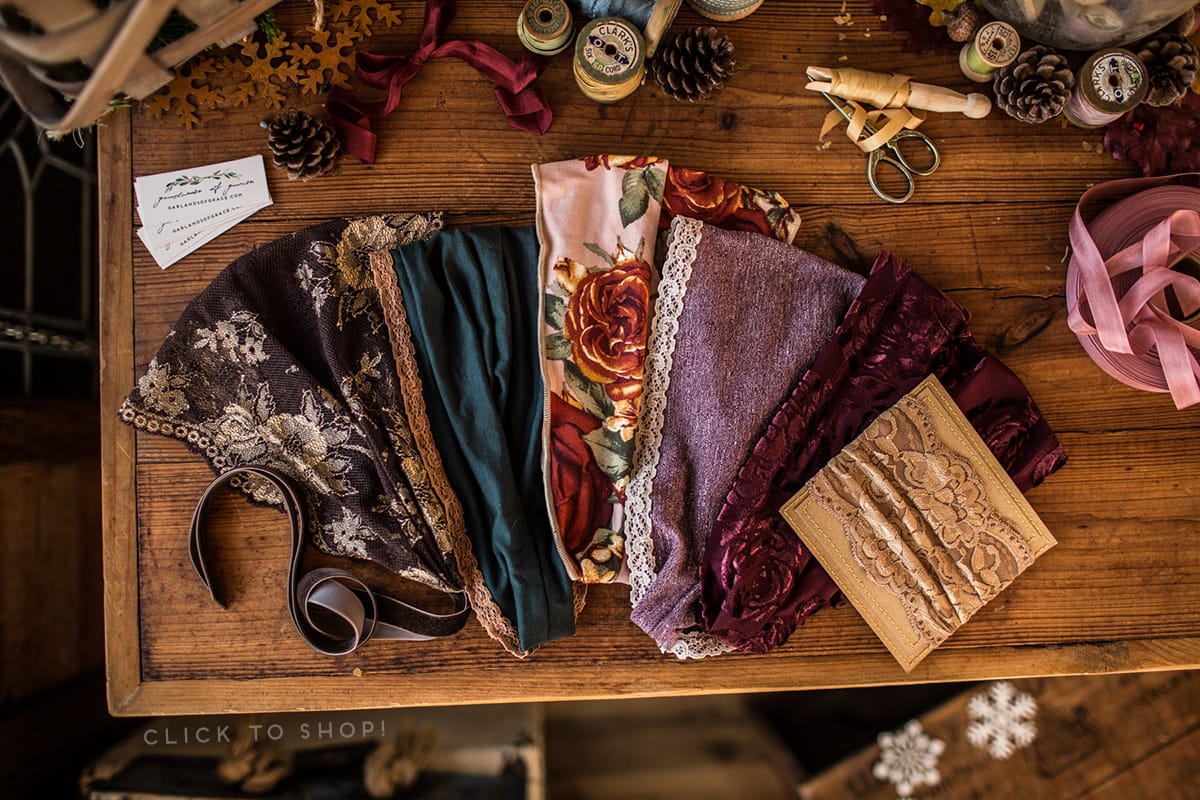 Its a busy day here at Garlands of Grace! We are so excited to enter the month of December and the blessing of shipping off so many lovely Christmas headwraps across the world!!💝✨ Special touches are being added to each order before heading out to sweet customers. I had to share an order before it ships! 😍 Left to right: Lovely Anniversary Lace in Espresso, Cecily’s Spiced Headwrap in Jade, Cecily’s Auburn Rose Headwrap, Cecily’s Spiced Headwrap in Garnet Heather, Cecily’s Maroon Velvet Headwrap, and Katherine’s Coffee Shop in Antique Gold!✨❤️