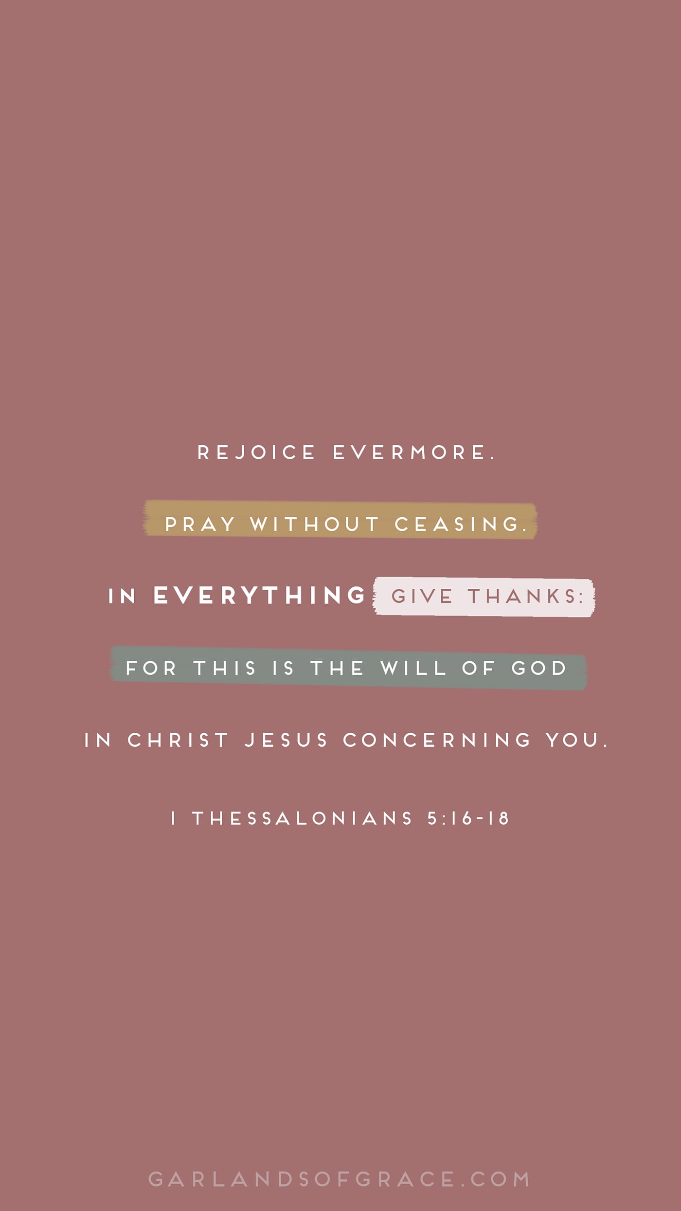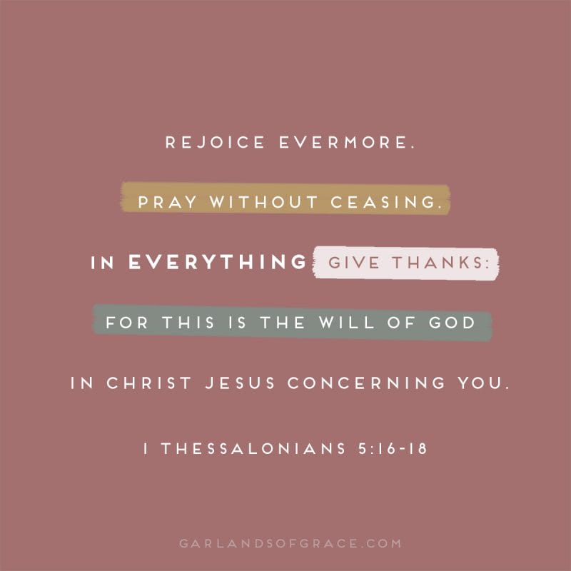 “Rejoice evermore. Pray without ceasing. In every thing give thanks: for this is the will of God in Christ Jesus concerning you.”