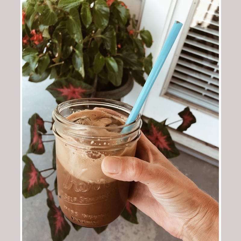 Directions: Pour hot coffee over sugar and chocolate chips to dissolve. Add milk and vanilla then blend with an immersion blender (or some type of smoothie blender) until frothy. Pour over ice!! ENJOY 😁❤️