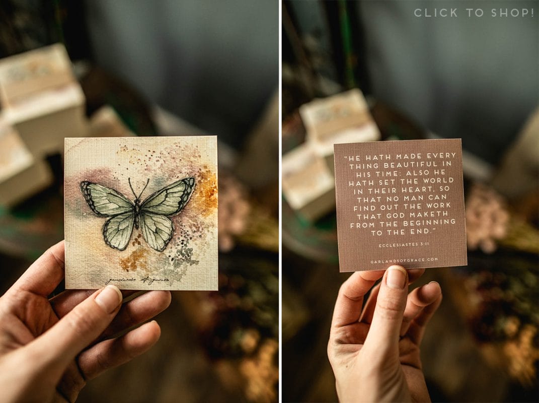 THANK YOU! Your orders and support over our 2021 Spring Reflections Collection has blessed our hearts beyond words and we are so grateful to the Lord for you! 🦋✨Including one of these custom watercolor Butterfly Verse Cards in every order as a small way to say THANK YOU! Painted by our sweet sister Ruth and Printed on Textured Linen Cardstock. We hope and pray this new collection and the Verse Card included will bless you in a special way! ✨ Much Love, the GarlandsOfGrace.com family ♥️