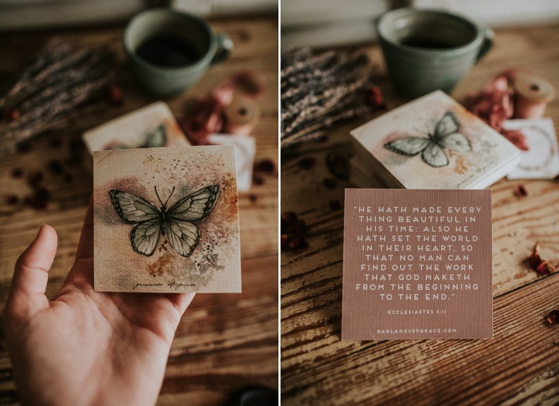 Have you received a Garlands of Grace Butterfly Verse Card yet? Included in every GarlandsOfGrace.com order while supplies last. Handpainted by our sweet sister, Ruth, and printed on textured linen cardstock. We hope these verse cards encourage you in a special way!! SHOP NOW