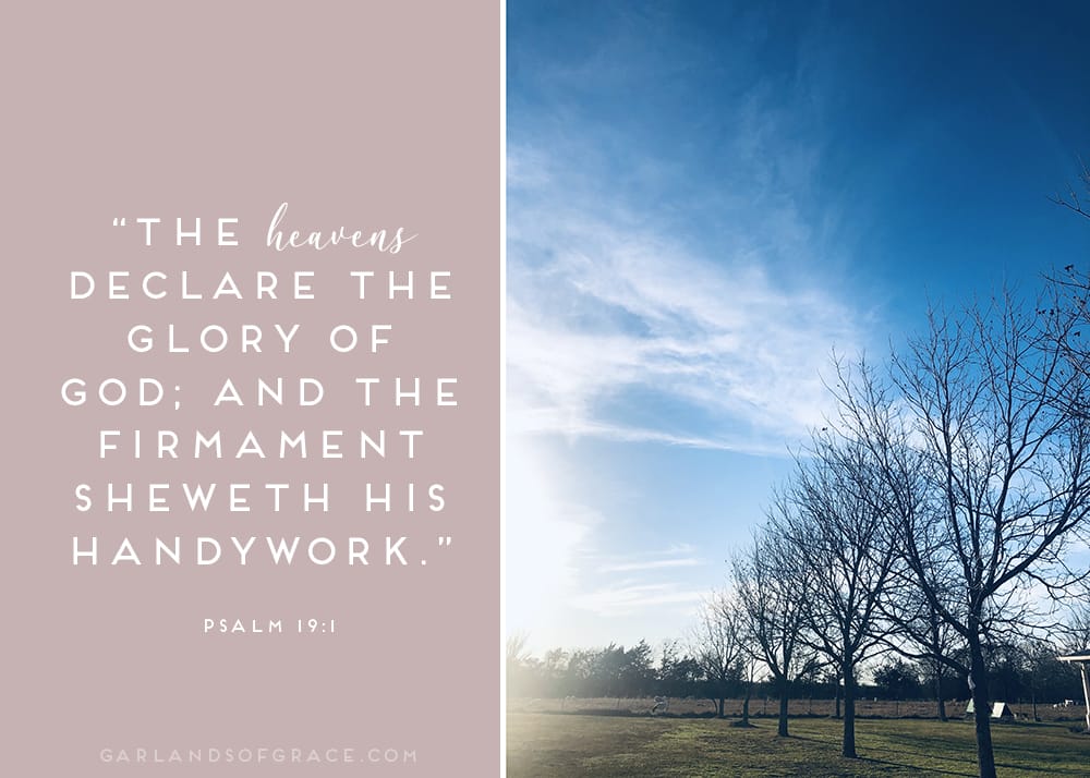 The Heavens Declare…✨ 1 / 5 / 221 / 5 / 22“The heavens declare the glory of God; and the firmament sheweth his handiwork. Day unto day uttereth speech, and night unto night sheweth knowledge. There is no speech nor language, where their voice is not heard.”Psalm 19:1-3