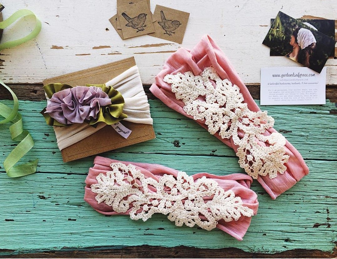 Fresh Flowers in Orchid, Pretty Plum, and soft Heather Gray Rosette headwraps headed out to customers today! It’s a beautiful day at Garlands of Grace. :)