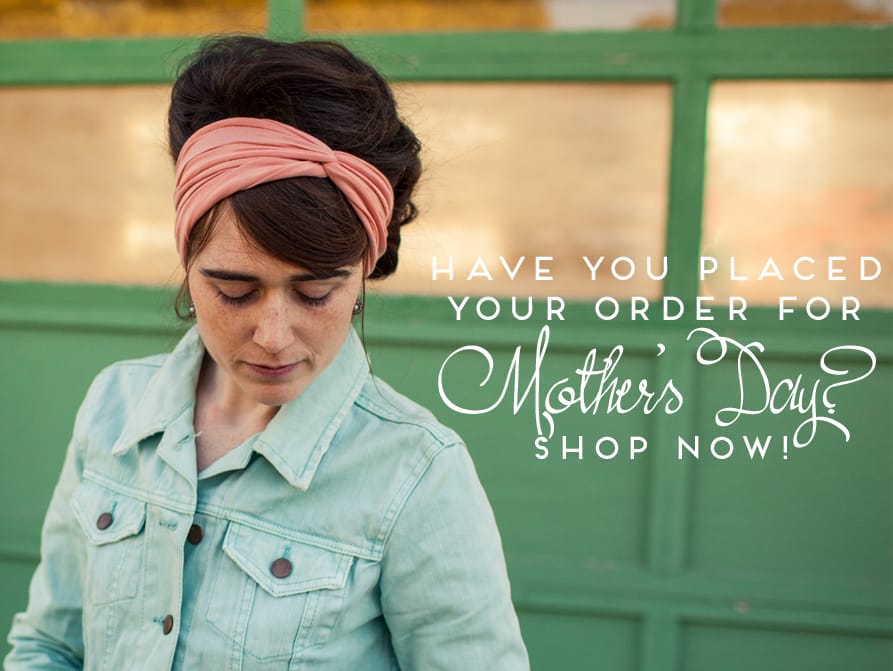 I couldn’t help but share this picture as mother’s day is just 6 days away! Kim wearing her Whimsical Garden Headwrap & baby looking as lovely as can be. ♥ These pictures always brighten-up my inbox!! Send us photos of yourself in your favorite Garlands of Grace products our way. we love seeing and sharing!