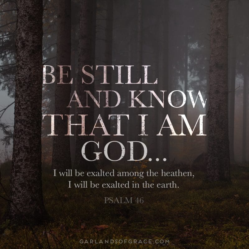 โThe heathen raged, the kingdoms were moved: he uttered his voice, the earth melted.ย The Lord of hosts is with us; the God of Jacob is our refuge. Selah.ย Come, behold the works of the Lord, what desolations he hath made in the earth.ย He maketh wars to cease unto the end of the earth; he breaketh the bow, and cutteth the spear in sunder; he burneth the chariot in the fire.ย Be still, and know that I am God: I will be exalted among the heathen, I will be exalted in the earth.ย The Lord of hosts is with us; the God of Jacob is our refuge. Selah.โ Psalm 46:6-11