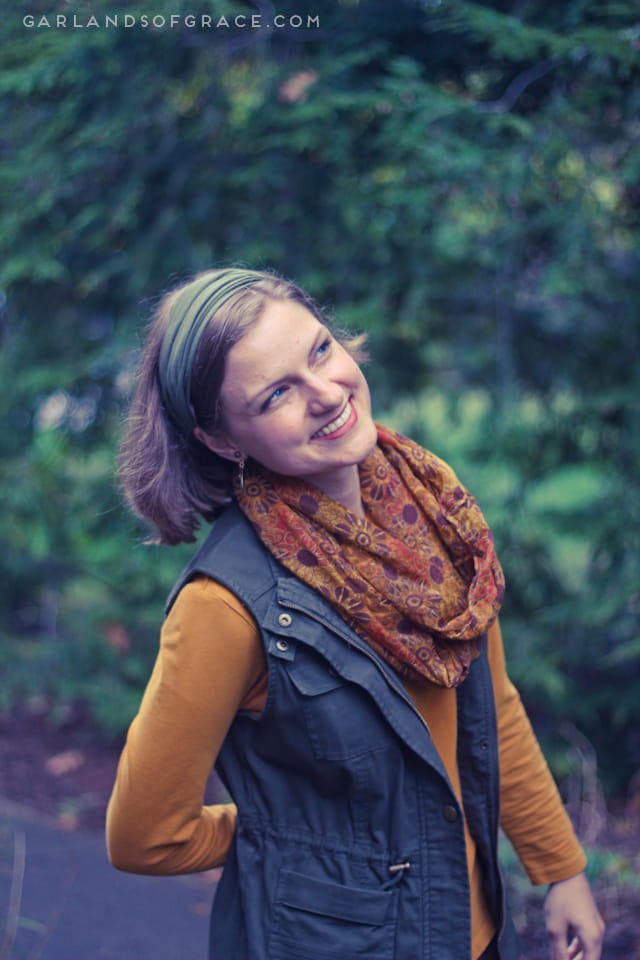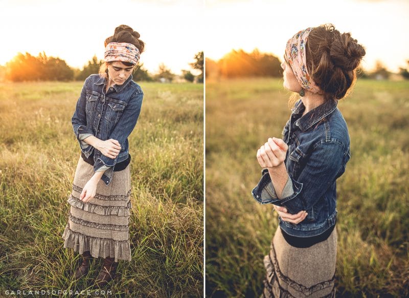 Aimee + Sophia styling their Garlands of Grace Headwraps (and Charlie the cat :D)! Love these photos so much. Aimee says, “Sophia loves fall! Her favorite things about this season are pumpkin patches and Apple orchards. She loves pumpkin pie, pumpkin flavored ice cream and iced coffee. Really pumpkin anything!” Aimee’s favorite verses for any season are Habakkuk 3:17-19! Beautiful!