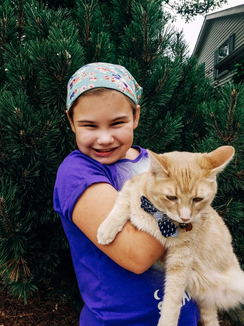 Sweet smiles from Sophia + Charlie(the cat) today!!???? No better way to say “Happy Saturday” than with a Sea Cottage Floral STRETCH Headwrap and your favorite kitty-cat by your side. Thank you so much for this photo, Sophia! You joy-filled smile made our day here at Garlands of Grace! ☺️?