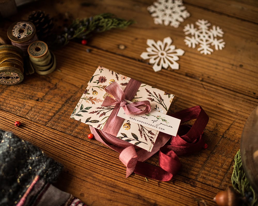 GARLANDS OF GRACE gift certificate now available! Gift cards will be wrapped as pictured and shipped! The perfect gift!