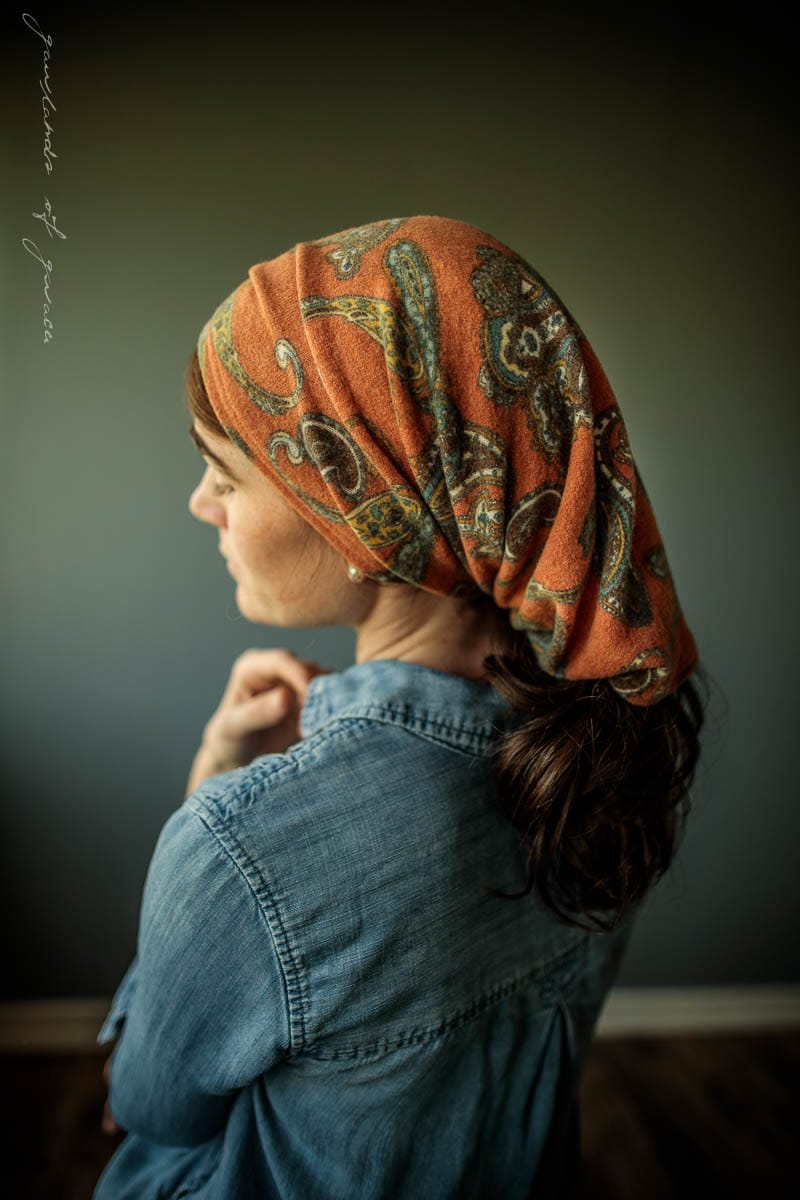 Fall and Winter are blowing in and Garlands of Grace original Appalachian Cowl collection is back for the season! Collection features the warmest sweaterknits, rich in texture and breathtaking in color and print. You will find yourself reaching for this headwrap time and again throughout the cool months ahead! Garlands of Grace Cowl covering may be worn long, folded for a medium length, or bunched for a flattering headband style! Wear over the ears on those chilly morning walks. Clasp Closure offers easy on/off wear and styling! Versatile, Flattering and Feminine!