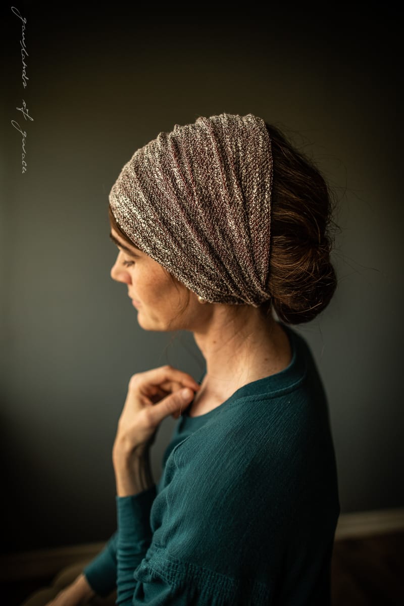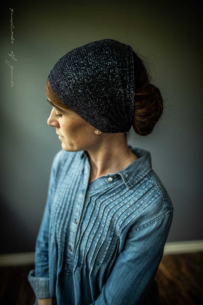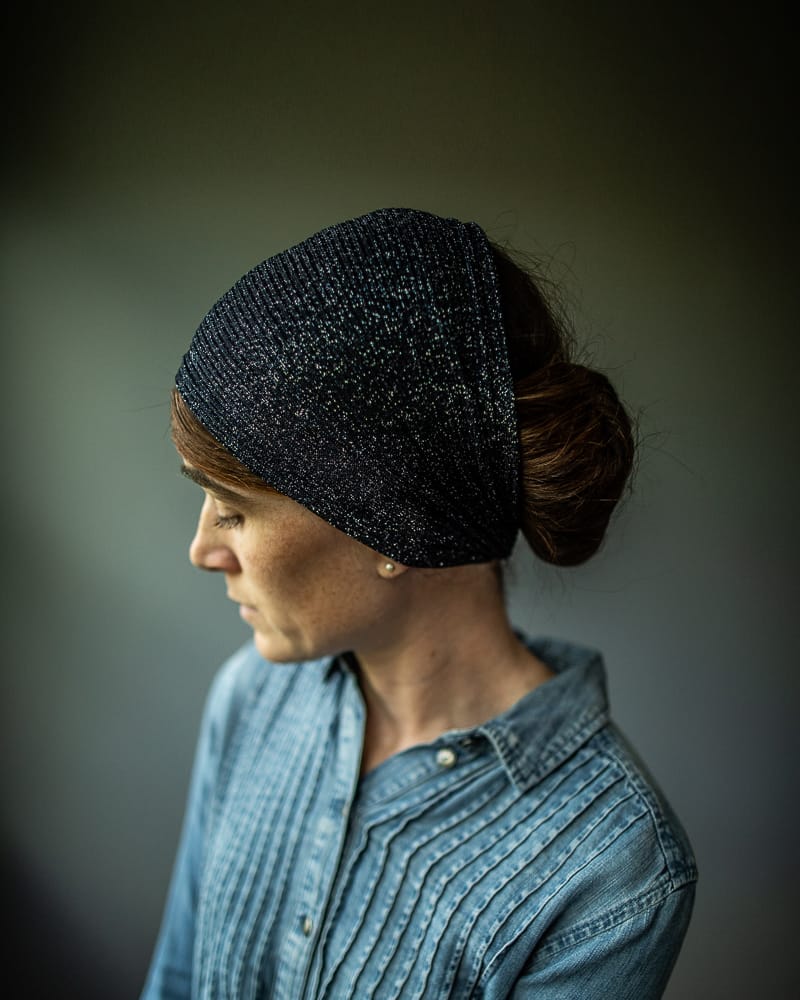 The most elegant yet versatile hairwrap collection featuring shimmering sweaterknits, breathtaking velvets, and timeless lace! Wear fully extended as a medium-length headcovering or simply pull taught for a narrow headband style. Finished with the thinnest ties in soft velvet for a comfortable, custom fit. Timeless, flattering, and feminine.