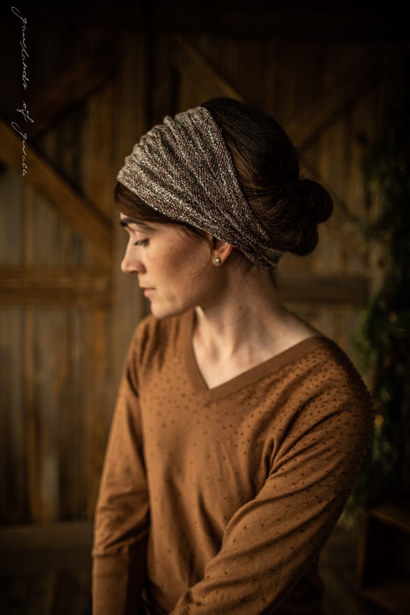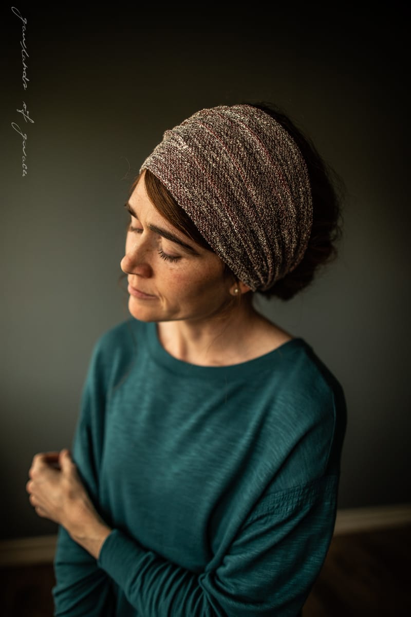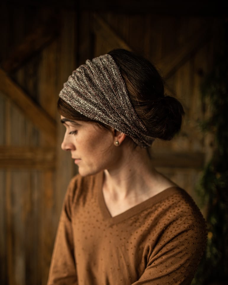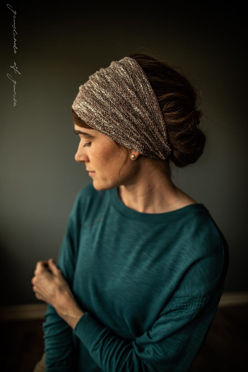 The most elegant yet versatile hairwrap collection featuring shimmering sweaterknits, breathtaking velvets, and timeless lace! Wear fully extended as a medium-length headcovering or simply pull taught for a narrow headband style. Finished with the thinnest ties in soft velvet for a comfortable, custom fit. Timeless, flattering, and feminine.