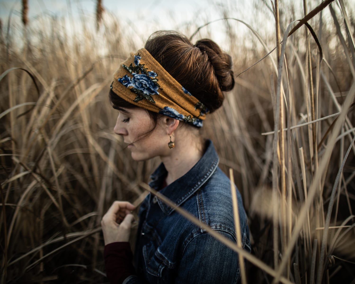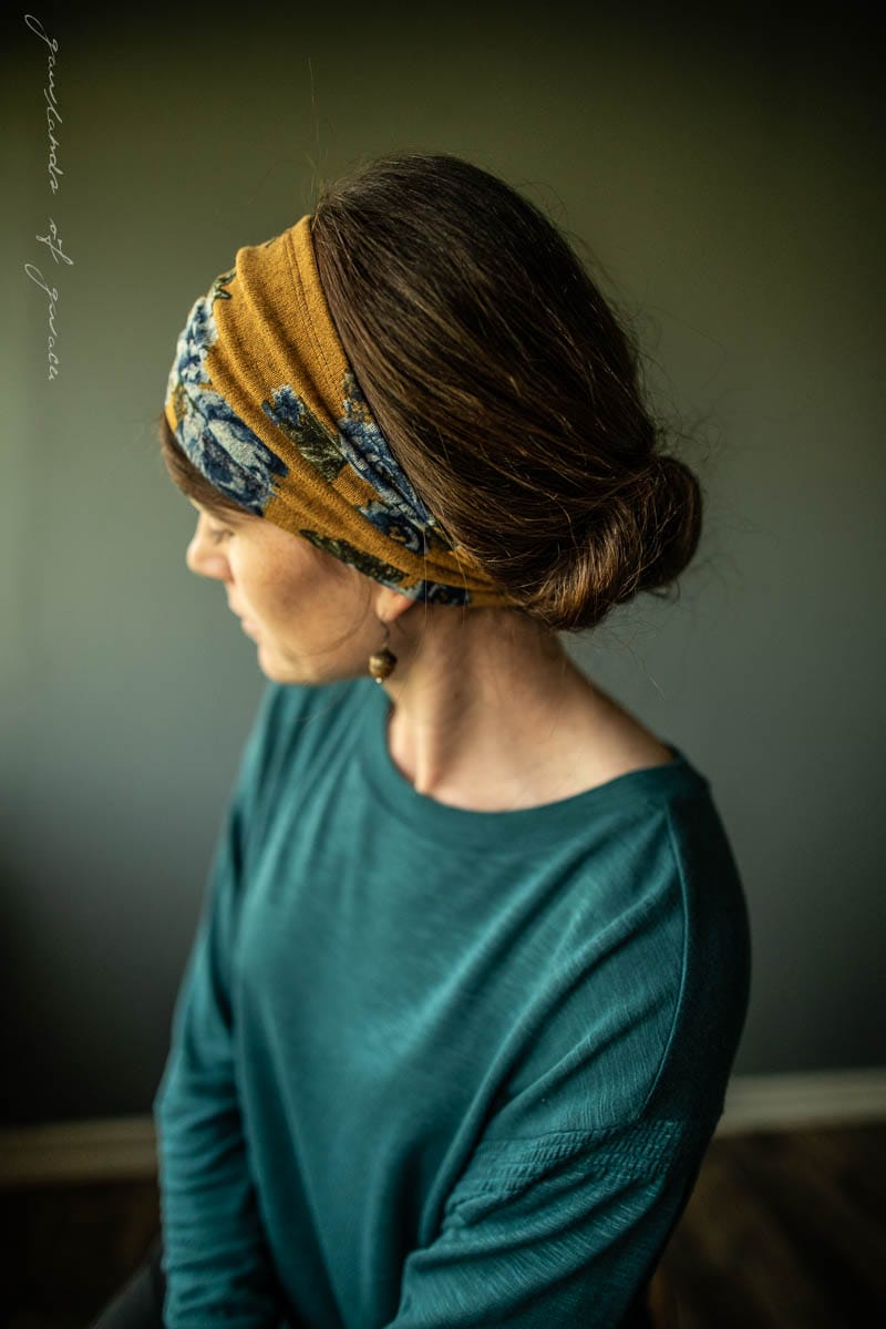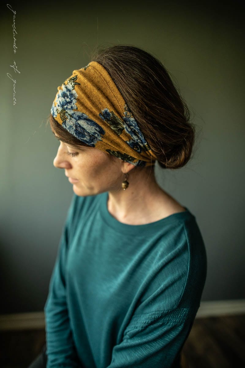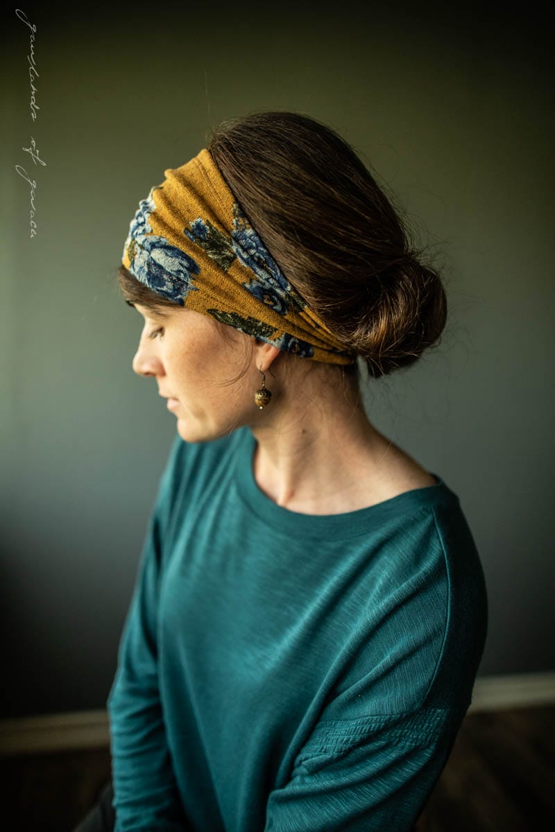 Feminine textured solids, soft sweater knits and breathtaking Floral prints! Garlands of Grace Classic Stretch Katherine hairwrap has arrived in a simply stunning collection fit for any occasion! Katherine may be worn fully extended as a smooth, wide headband. Simply pull taught to achieve a narrower hairwrap style. Finished with a clasp closure for a seamless look. Timeless, flattering and feminine.