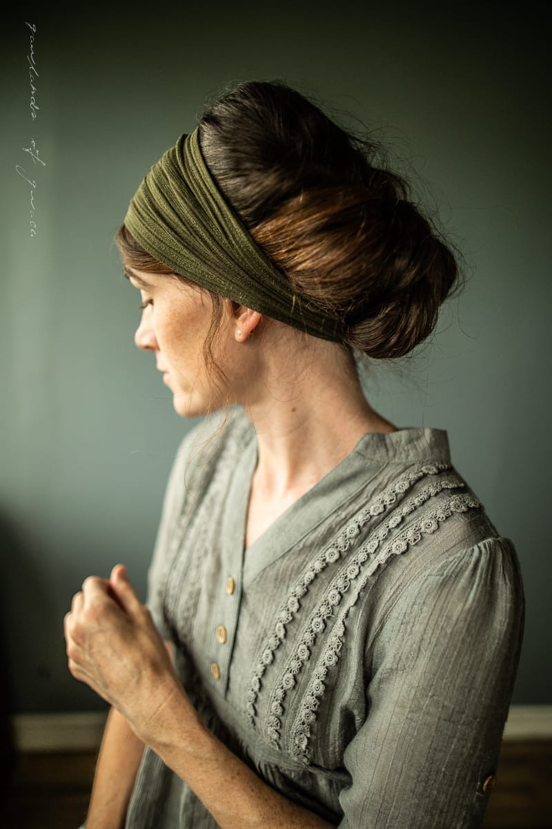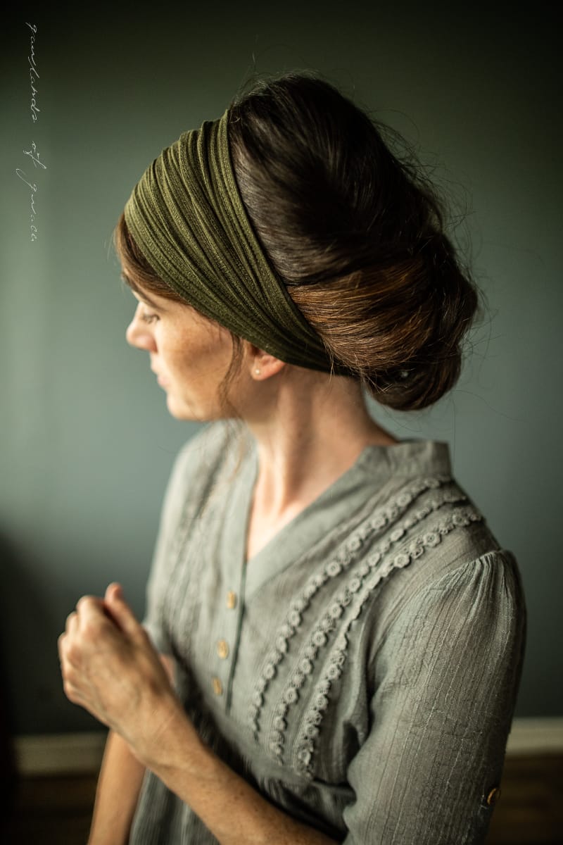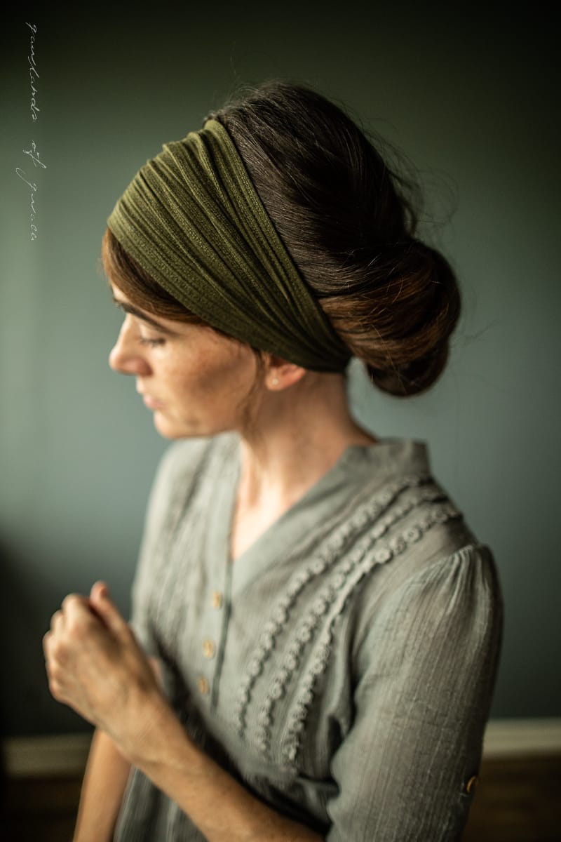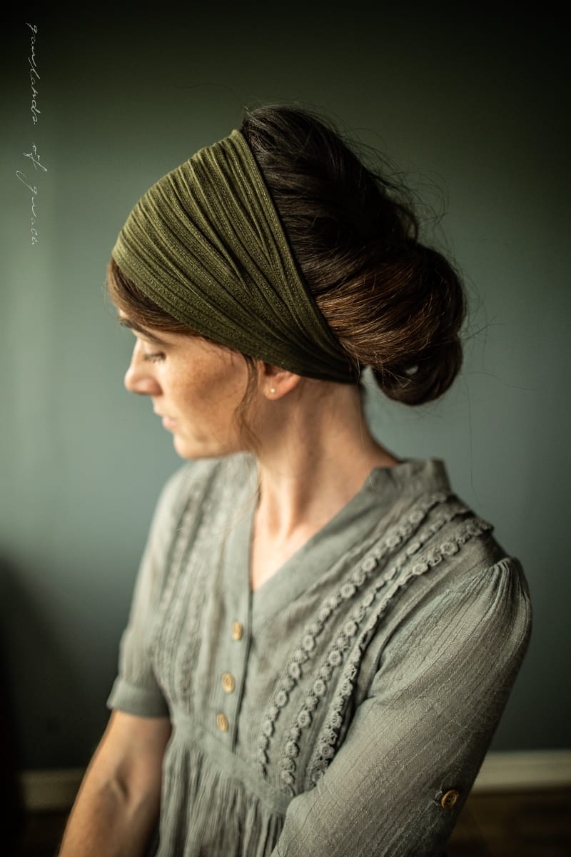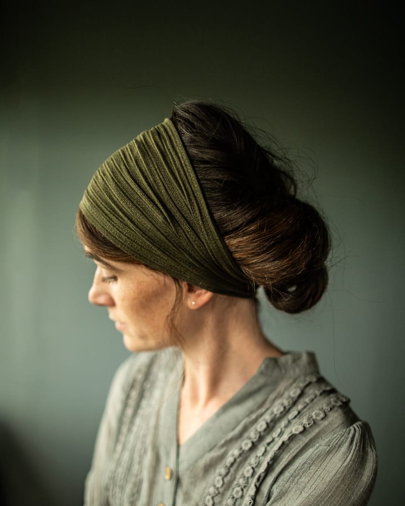 Feminine textured solids and breathtaking Floral prints! Garlands of Grace Classic Stretch Katherine hairwrap has arrived in a simply stunning collection fit for any occasion! Katherine may be worn fully extended as a smooth, wide headband. Simply pull taught to achieve a narrower hairwrap style. Finished with a clasp closure for a seamless look. Timeless, flattering, and feminine.