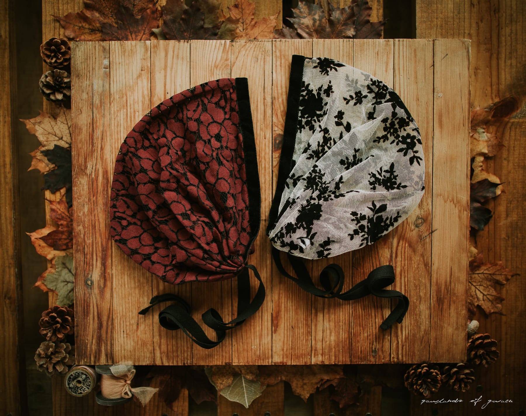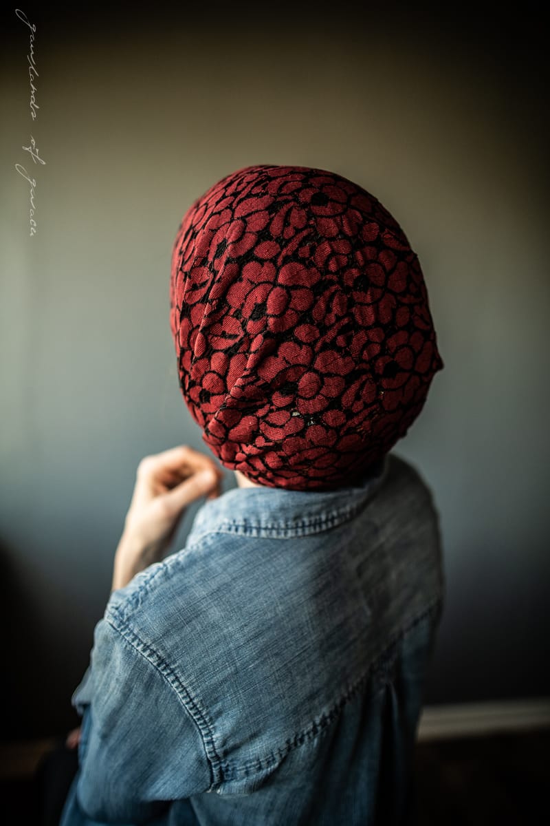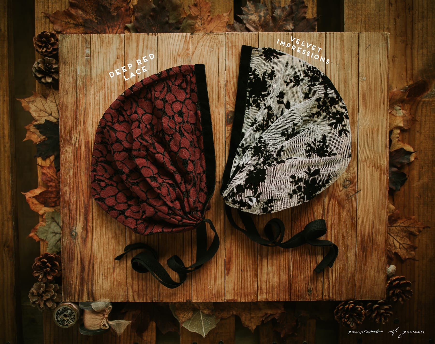 Keep hair back without ties! Meg’s classic Victorian style snood covering is offered this season in a collection featuring the softest stretch and loveliest lace! Meg’s hairwrap offers full coverage and is made to wrap the head and fasten at the base of the neck with Garlands of Grace signature Tie Closure. Truly one of a kind!